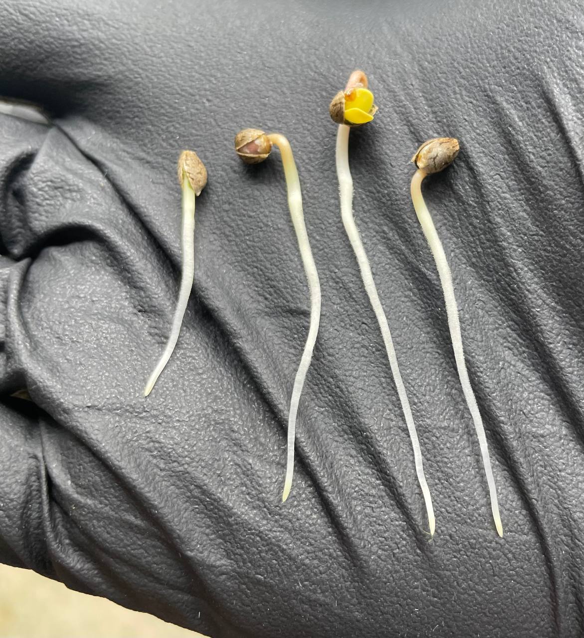 Voici le début de la culture : une graine soigneusement germée, avec un développement contrôlé pour obtenir un racine principale bien droite. Cette méthode facilite la plantation dans le substrat et assure une base solide pour une croissance réussie.