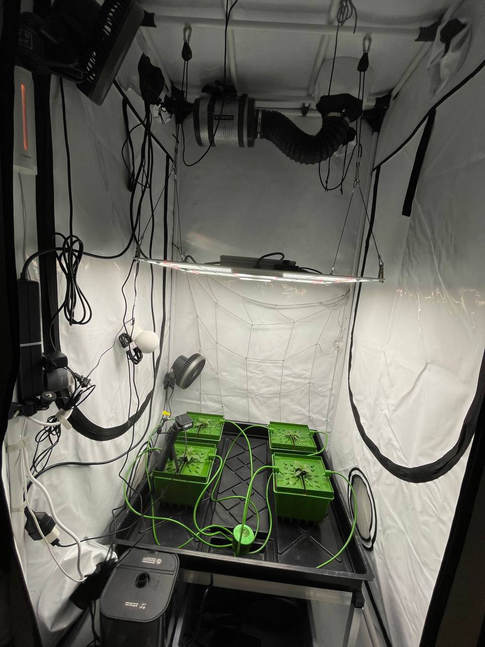 - Ventilation AC Infinity avec extracteur d’air et filtre à charbon, ainsi que 3 ventilateurs AC Infinity.